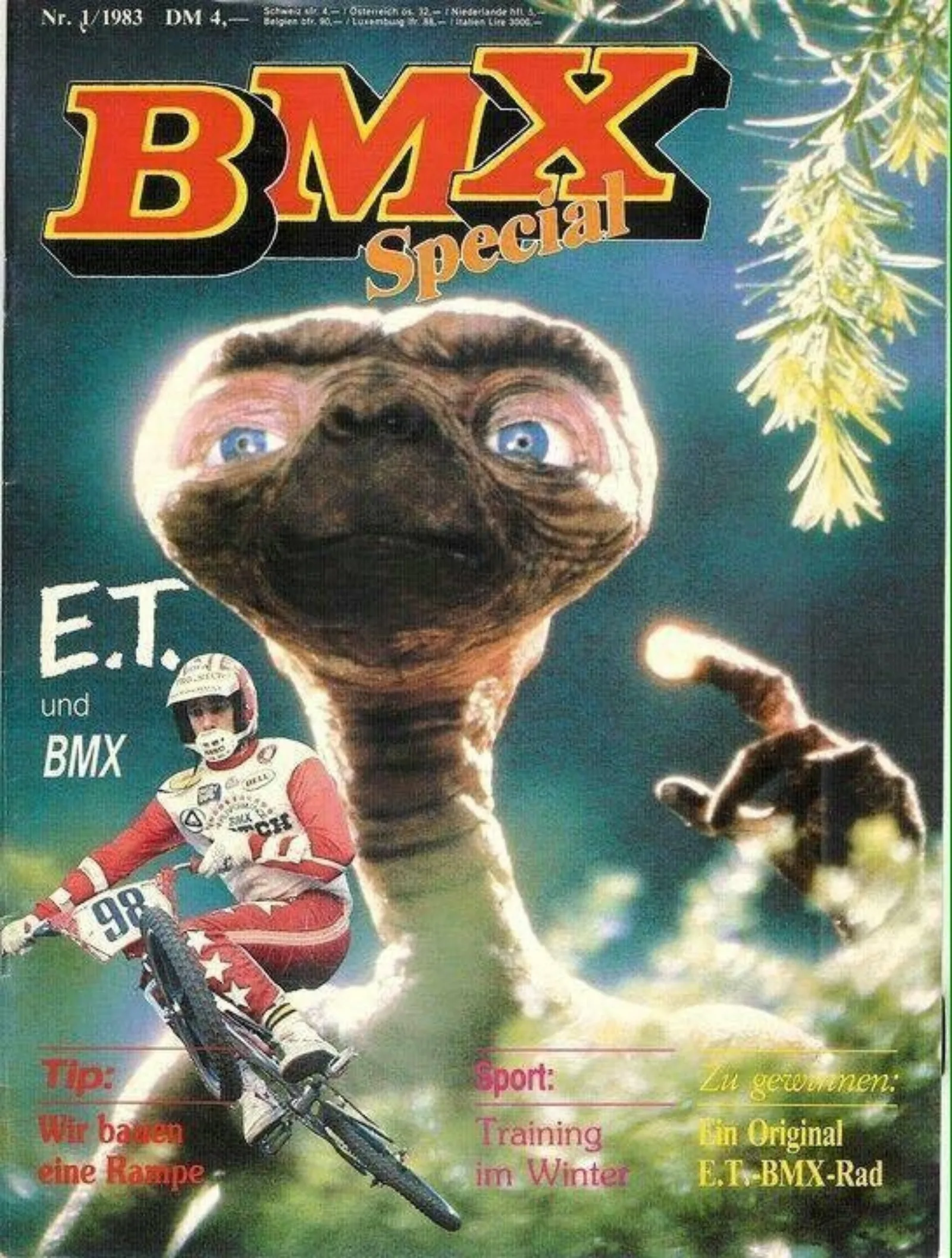 Die allererste Ausgabe der "BMX Special" erschien im Dezember 1982 als Beilage des Motocross Enduro Magazins. Das Heft verkaufte sich prächtig, denn der gleichzeitig in die Kinos gekommene Film "ET" bescherte dem BMX-Sport den ersten richtigen Boom. Schon die nächste Ausgabe der BMX-Special erschien daher als eigenständiges Heft mit einem naheliegenden Coverboy: ET.