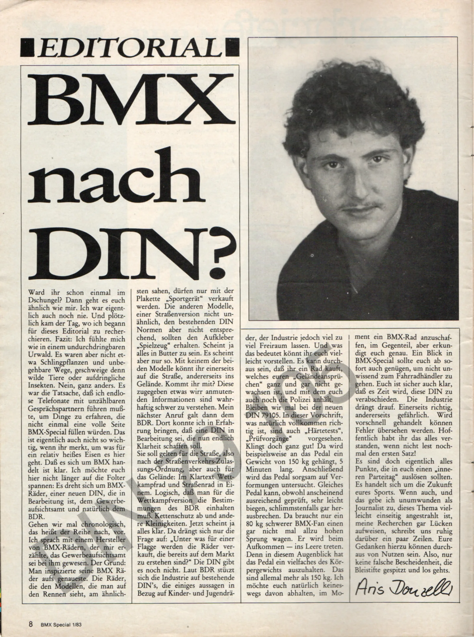 Der bundesweit bekannte Sportmoderator Aris Donzelli wurde 1982 eher zufällig Chefredakteur des ersten deutschen BMX-Magazins und gab der jungen Sportart damit erstmals ein Sprachrohr.