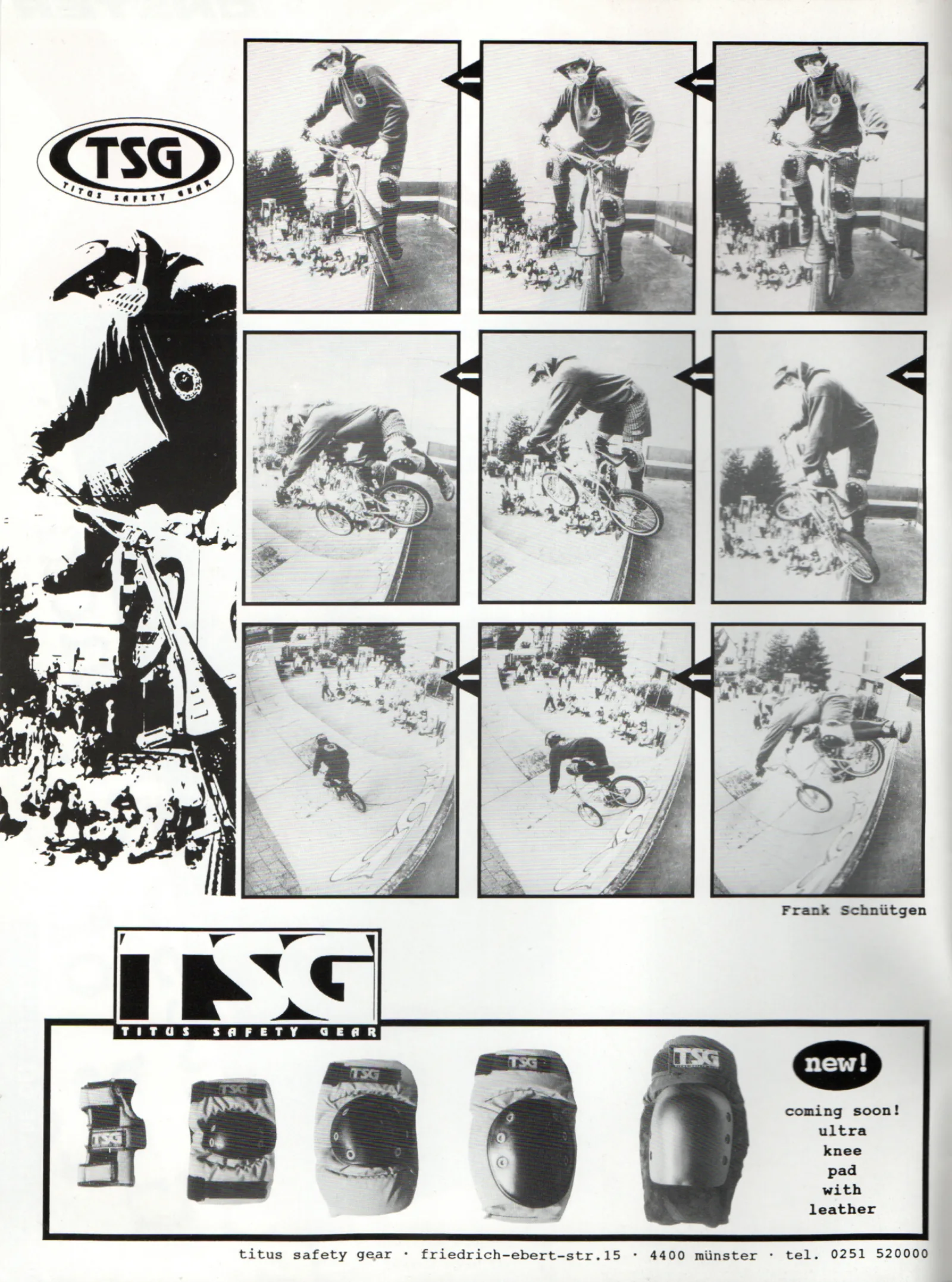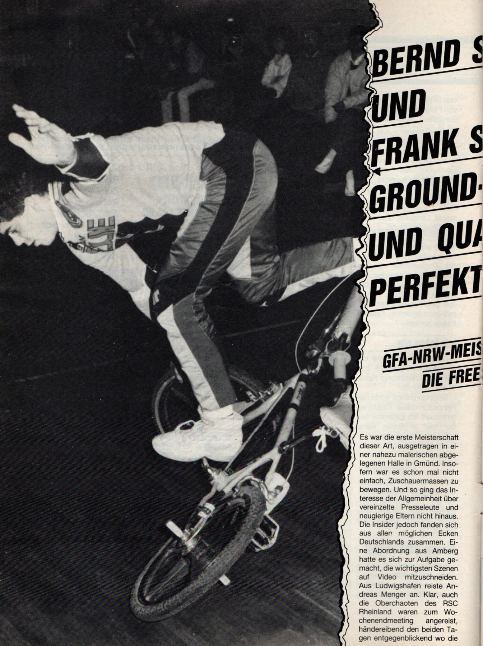 Franks BMX-Karriere begann 1979, als er im zarten Alter von 12 Jahren auf der Kölner Domplatte Rollschuh fuhr: Die ersten BMX-Impulse kamen und Frank begann mit seinem umgebauten Bonanzarad Matschrennen in der Wahner Heide bei Porz zu fahren. Zu Weihnachten bekam er dann sein erstes BMX-Rad: ein silbernes Schauff mit Alugussfelgen und Zweigangschaltung, das ihm leider schon im Jahr darauf geklaut wurde. Es wurde also ersetzt durch ein Raleigh Rampar mit gelben Tuff Wheels und einer Rücktrittbremse, der Bremse, der er bis heute treu geblieben ist.