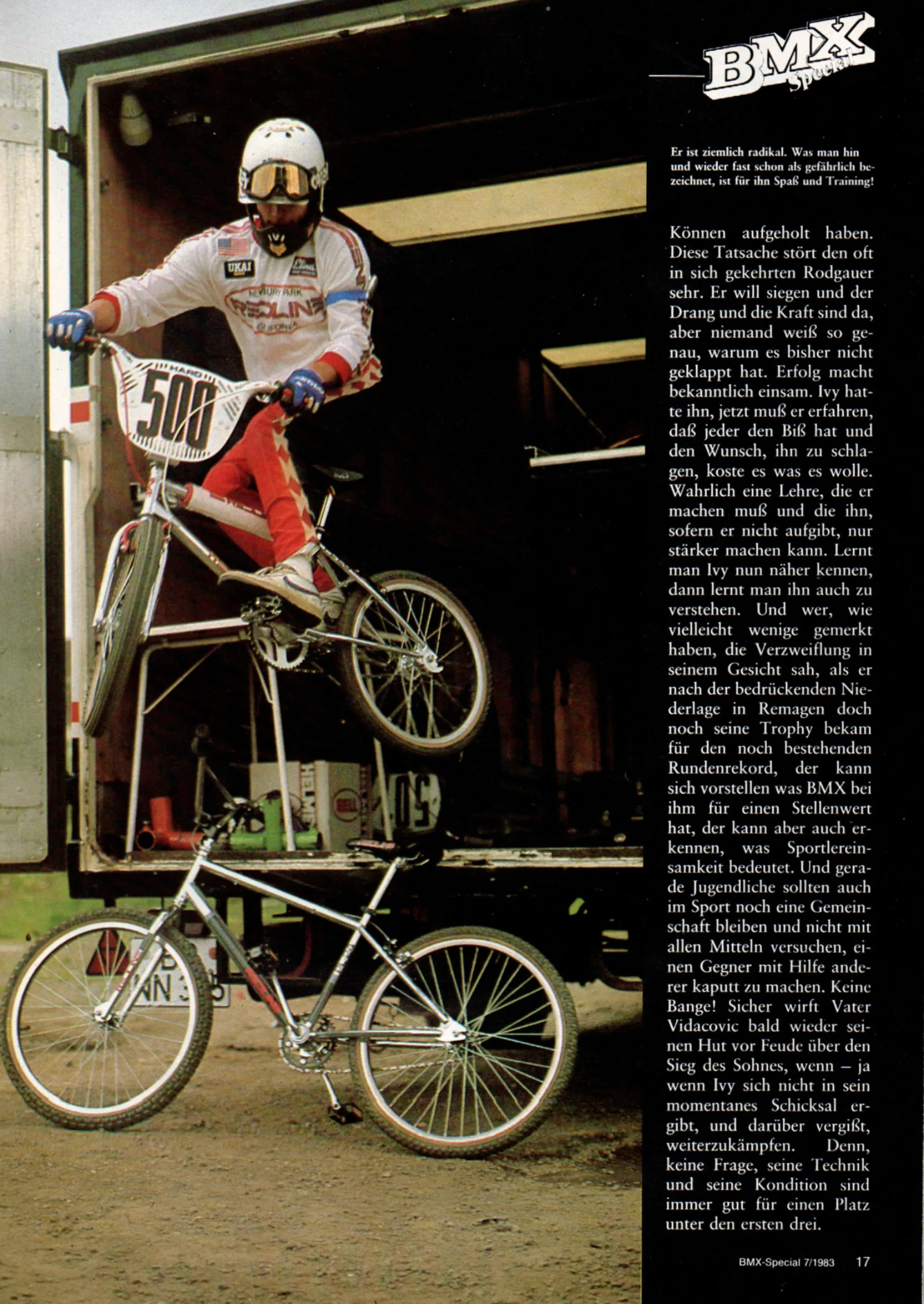 Der Rest ist Geschichte: Ivi gewann noch im selben Jahr den Centurion Supercup, wurde ein Jahr später Deutscher Meister, fuhr die erste Europameisterschaft in Beek-en-Donk, wurde 1983 Cruiser Champion und nahm an der Weltmeisterschaft in Slagharen teil. Er reiste in die USA und schloss sich dem amerikanischen Redline Factory Team an. Sein kraftvoller Stil, seine berühmte Kurventechnik und seine enorme Geschwindigkeit machten ihn zu einem Vorbild für die deutsche BMX-Generation der 80er Jahre.