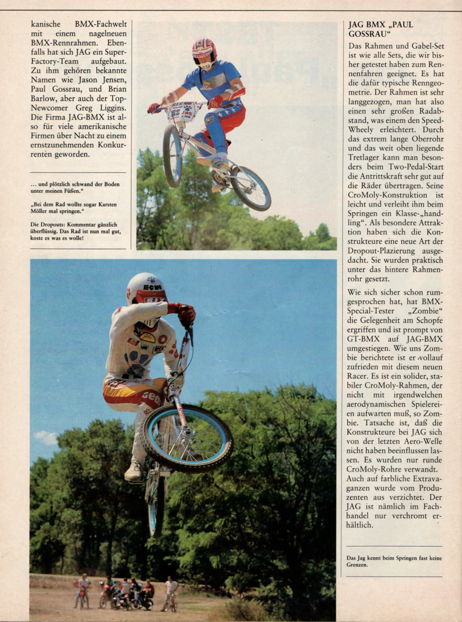 Karsten holte seinen Bekannten und Nachbarn Uli Aust (RIP) mit ins Boot, und die drei übernahmen einen Großteil der redaktionellen Arbeit für das neue Magazin, das in der Nähe von Stuttgart beheimatet war, von ihrem Zuhause in West-Berlin aus. Sie sammelten Ideen, inszenierten und fotografierten Reportagen, Tipps und Geschichten und reisten zu so vielen Rennen wie möglich. Als sich das Team nach etwa einem Jahr mit dem Verleger zerstritt, wechselten sie 1984 geschlossen den Verlag und brachten ein neues Magazin unter dem Namen "Speed (Jump)" heraus.
