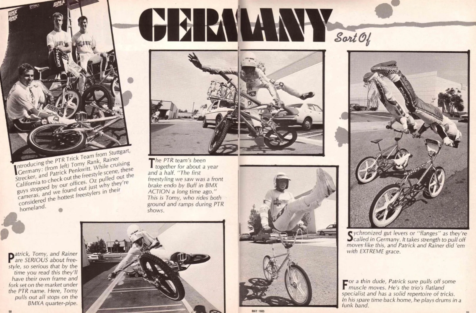 Als professionelles Team mit eigenem Logo, eigener Kleidung und eigenem Rad gingen sie im Frühjahr 1985 auf eine große Tournee durch ganz Deutschland und lernten die aufkommende Freestyle Szene in Deutschland und der Schweiz kennen. Sie traten in mehreren großen Fernsehsendungen auf, unter anderem im Ferienkalender und im Aktuellen Sportstudio des ZDF. Alle Minderwertigkeitskomplexe, die man mit einer so obskuren Sportart wie BMX-Freestyle haben kann, wurden dort noch verstärkt: Der Sportstudio-Moderator Bernd Heller weigerte sich, die drei auch nur anzusehen, geschweige denn, sie namentlich anzukündigen. Aus seiner Verachtung für diesen "Kinderkram" machte er keinen Hehl. Erst nach massiven Protesten von Patrick, Thomas und Rainer wurden sie halbherzig und mit großer Verspätung angekündigt und absolvierten ihren Auftritt während der Abspann schon rollte. Aber das Kind lag jetzt im Brunnen: BMX Deutschland hat das PTR-Team in Aktion erlebt und damit die Bestätigung, dass all der Hype aus der Speed gerechtfertigt war: Die drei waren gut!