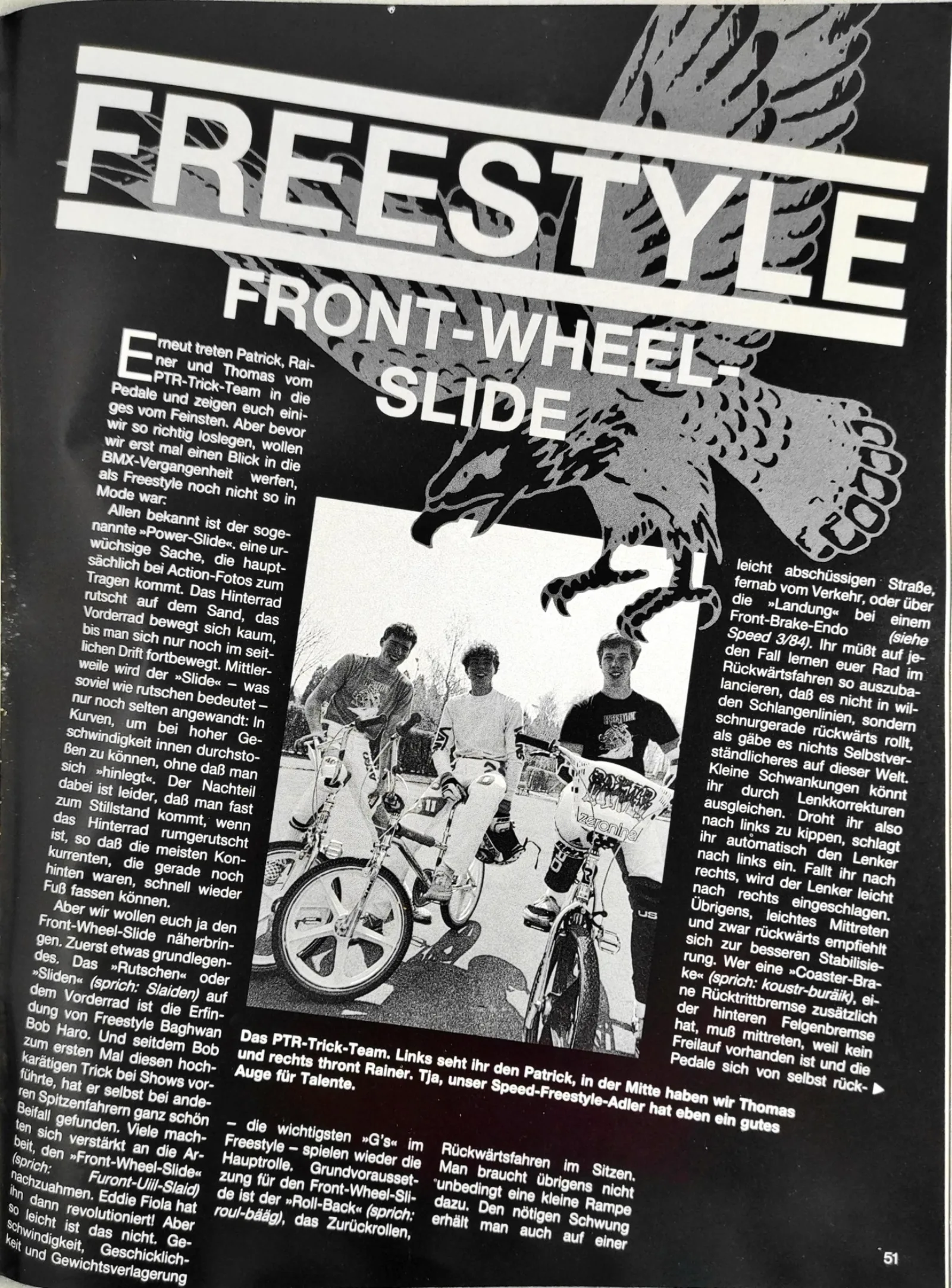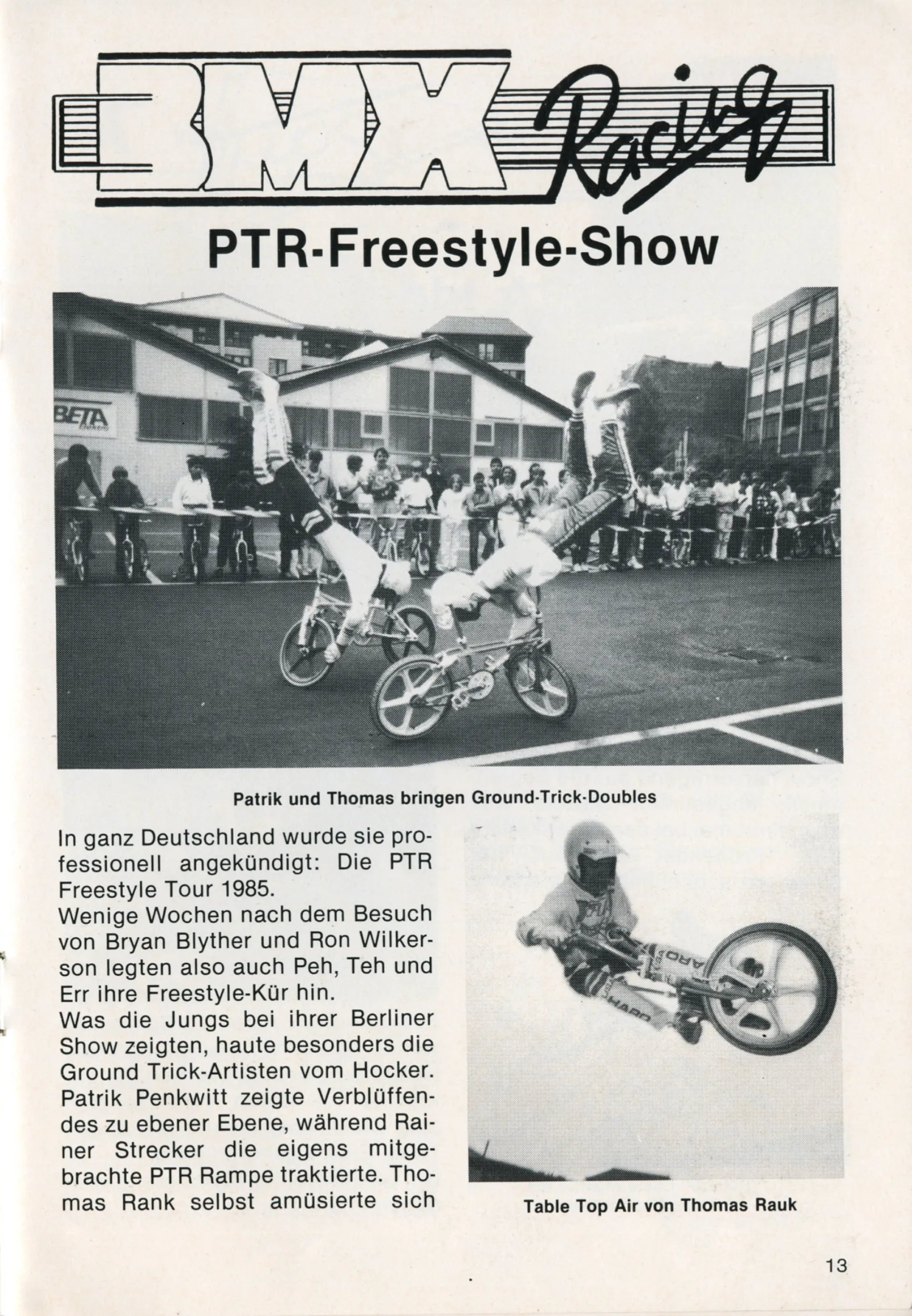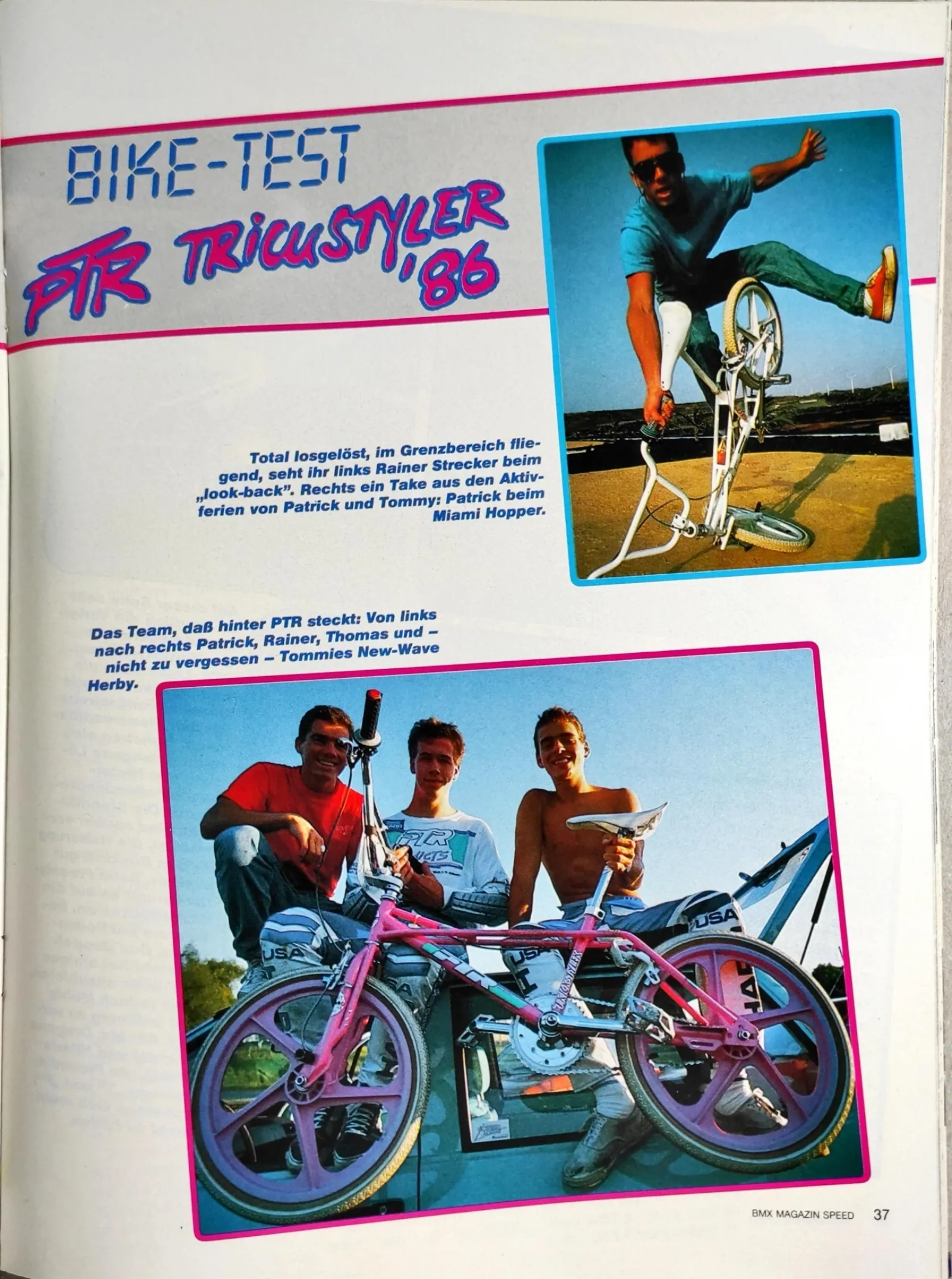 1986 wurde der PTR-Trickstyler erneut überarbeitet und die Zeitschrift "BMX Sport", wie die Speed inzwischen hieß, kündigte den großen Angriff der PTR-Jungs auf die internationale Contest-Szene an. Patrick, Thomas und Rainer waren wieder Judges im Jugendpark, beim zweiten großen deutschen Freestyle Contest. Zusammen mit Martin Aparijo, Dennis Langlais und Stephan Prantl fuhren sie eine Show vor einem großen Publikum der aufstrebenden und ambitionierten deutschen BMX Freestyle Szene.