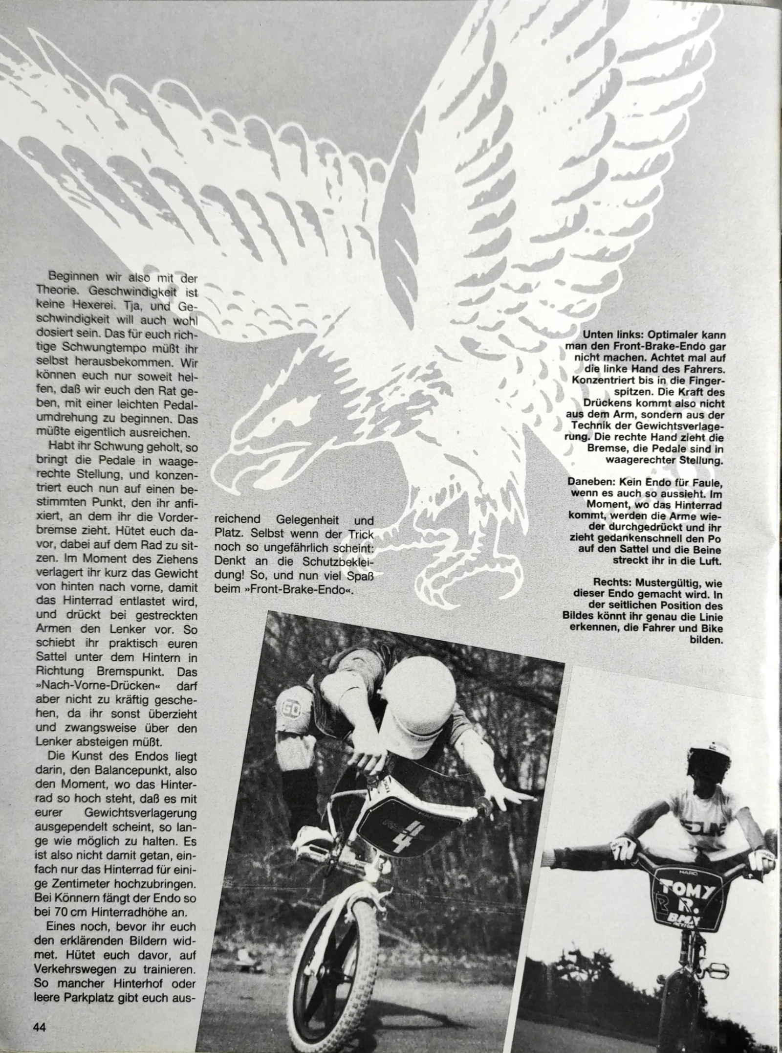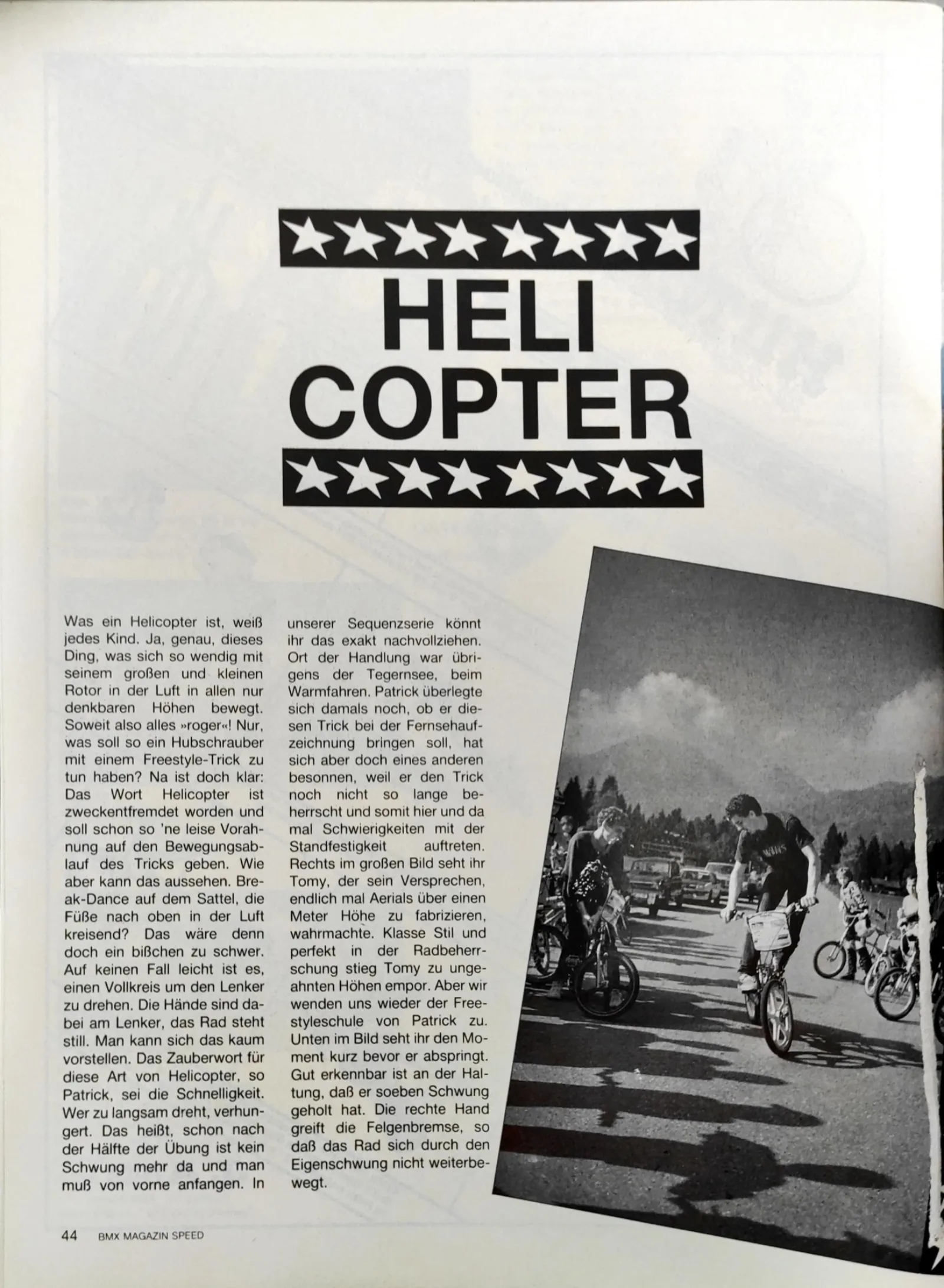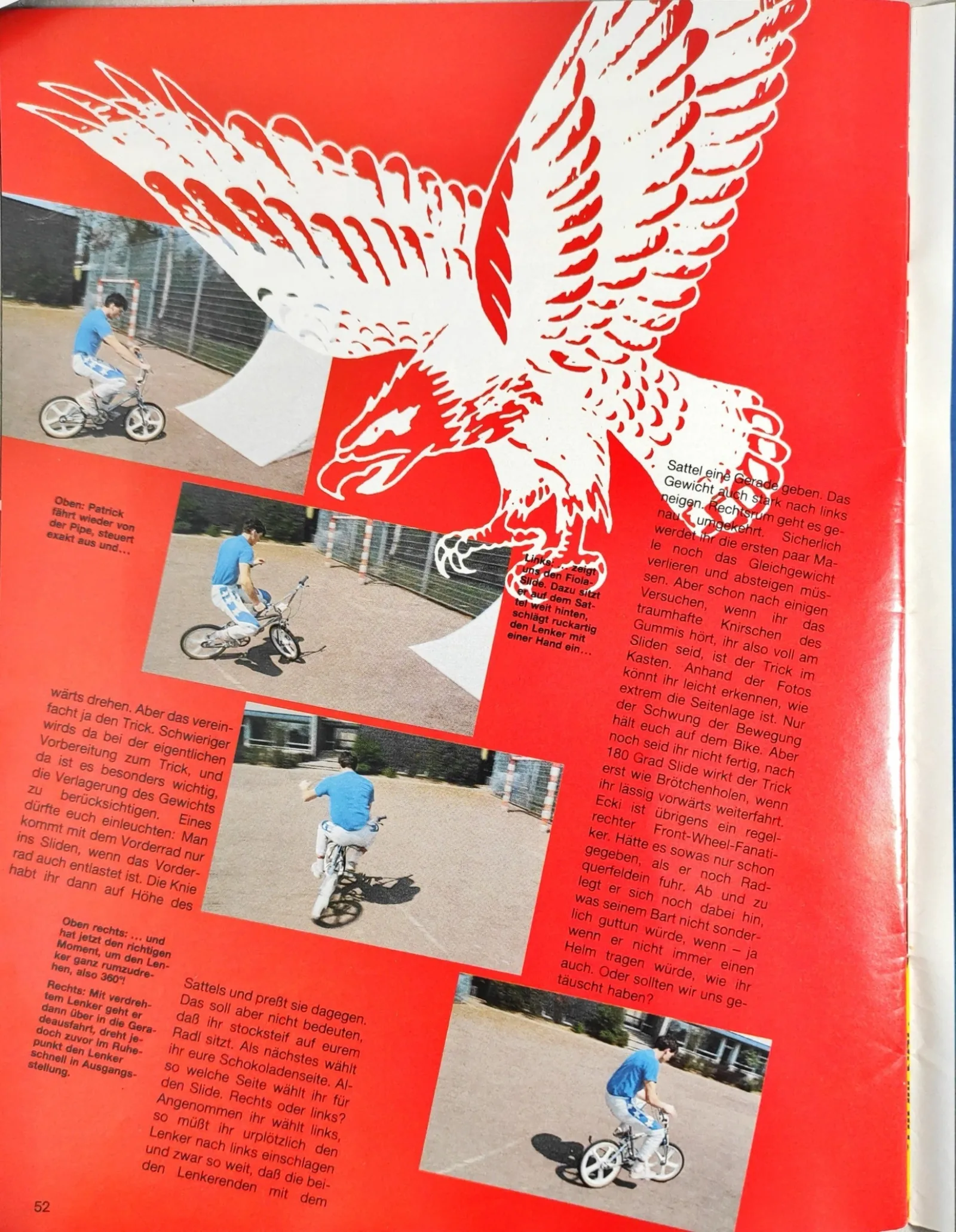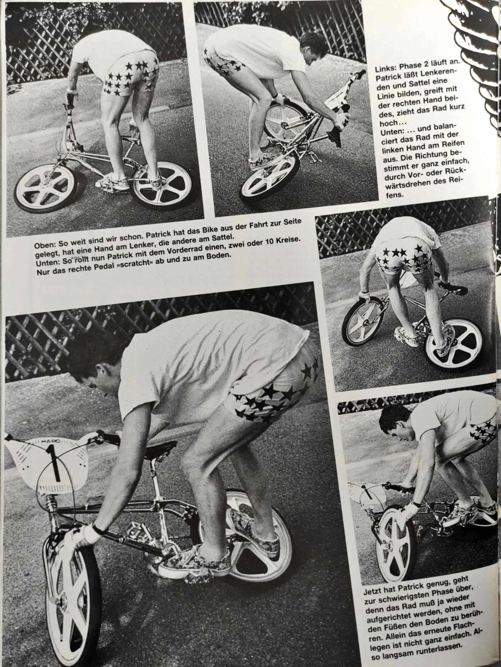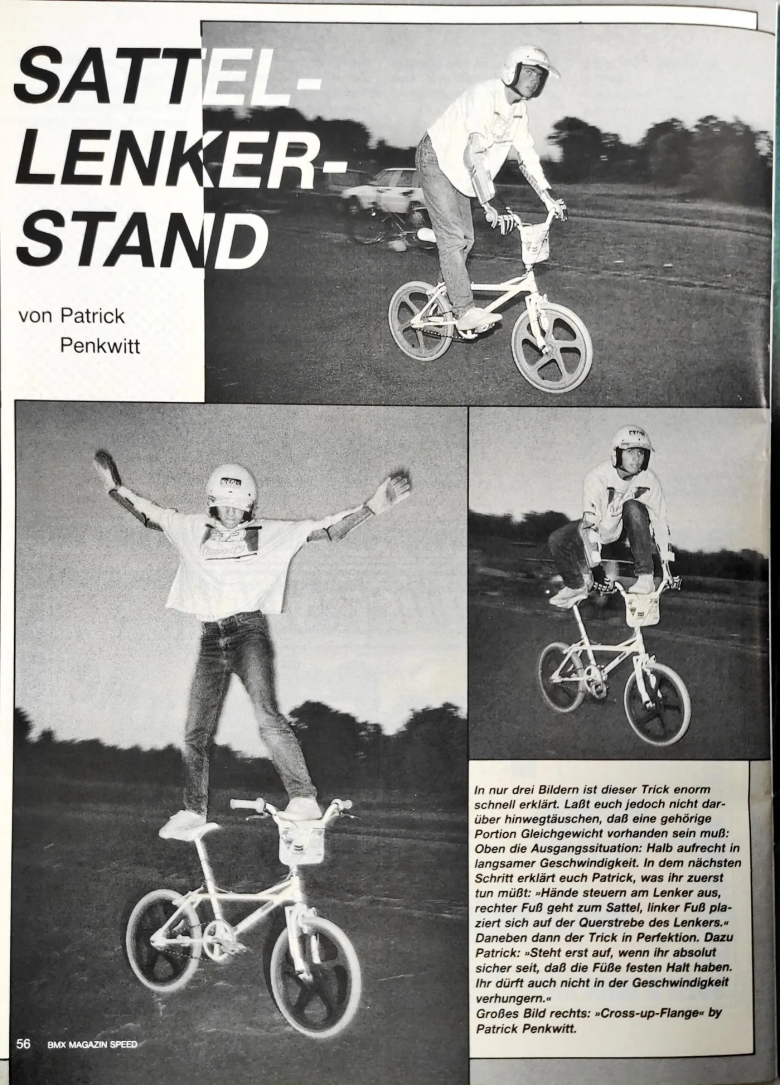 Den Endo hatte er im BMX Action-Magazin gesehen und er hatte ihn tief beeindruckt. Damals gab es noch kein Youtube, keine Videokassetten und BMX fand auch nicht im Fernsehen statt. Echtes, bewegtes BMX-Freestyle hat Patrick erst bei der WM 1983 im niederländischen Slagharen gesehen, wo Billy Stupple eine Show fuhr. Er reimte sich die Tricks also irgendwie zusammen und entwickelte eigenen Idee. Er und seine zwei Kollegen Thomas und Rainer Strecker fuhren fanatisch jeden einzelnen Tag – "von Schulende bis Schulanfang"