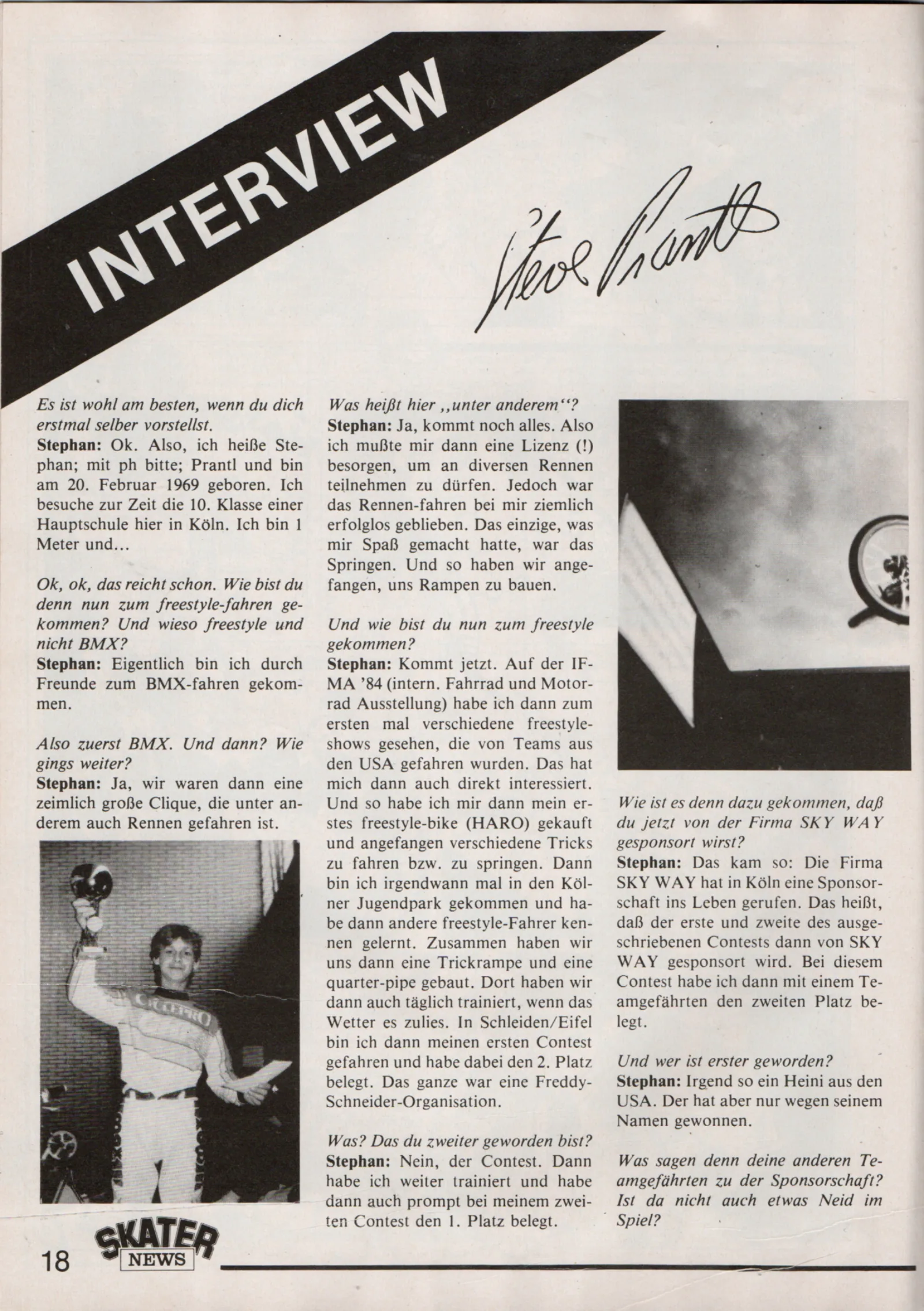 Aber auch seine persönliche Karriere kann sich sehen lassen. Von Anfang an dominierte er die Rampenwettbewerbe im Jugendpark, trat bei Shows mit dem PTR-Trickteam auf und reiste 1987 zur ersten Freestyle-Weltmeisterschaft nach England, wo er mit seinen Liptricks und seinem außergewöhnlichen Style den zweiten Platz belegte.