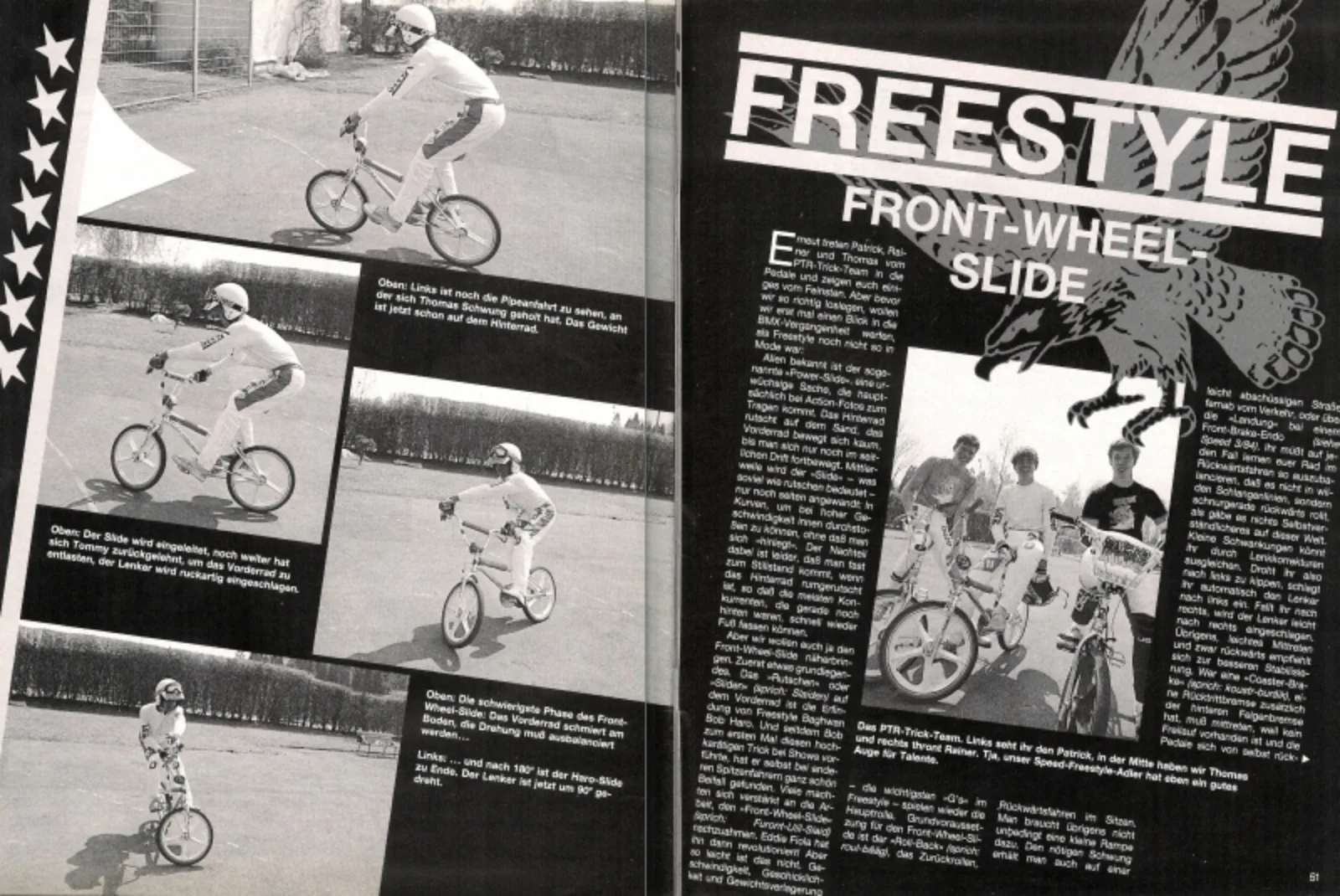 Die amerikanischen Magazine dienten als Vorlage und Inspiration für endlose Practise-Sessions. Thomas, Rainer und Patrick trainierten stundenlang auf Rampe und Boden und fuhren Shows im Stuttgarter Raum. Der endgültige Kick zur totalen BMX-Begeisterung kam 1984 bei einer Reise in die USA, wo sie unter anderem Bob Haro trafen, dem sie ihr Können in einer Solo-Session zeigen durften. Ein Sponsorenvertrag wurde abgeschlossen, das PTR-Trickteam zierte eine Seite im legendären Freestylin'-Magazin und sie kehrten quasi als Superstars in ihre Heimat zurück, in der es noch keine nennenswerte Freestyle-Szene gab.