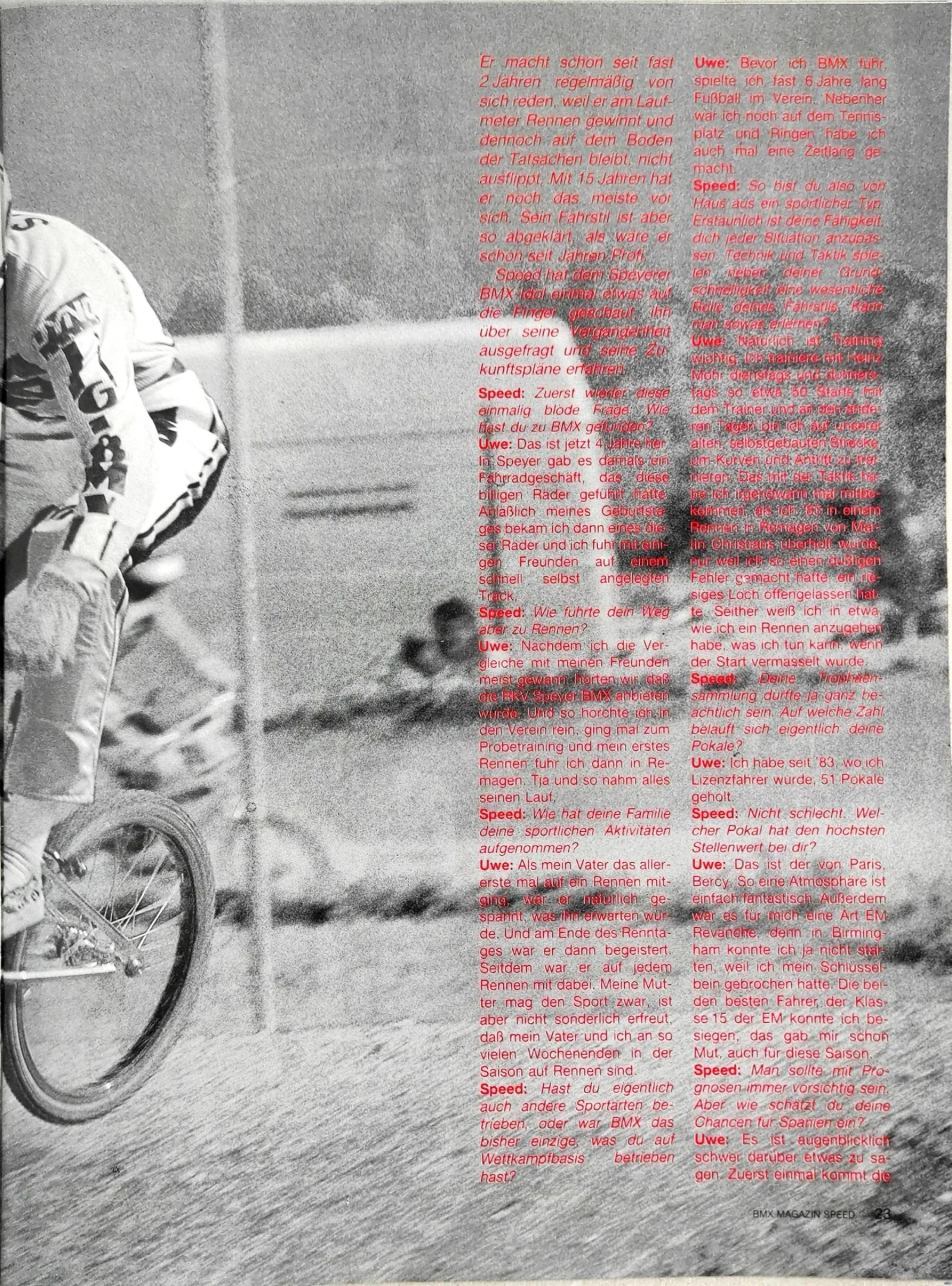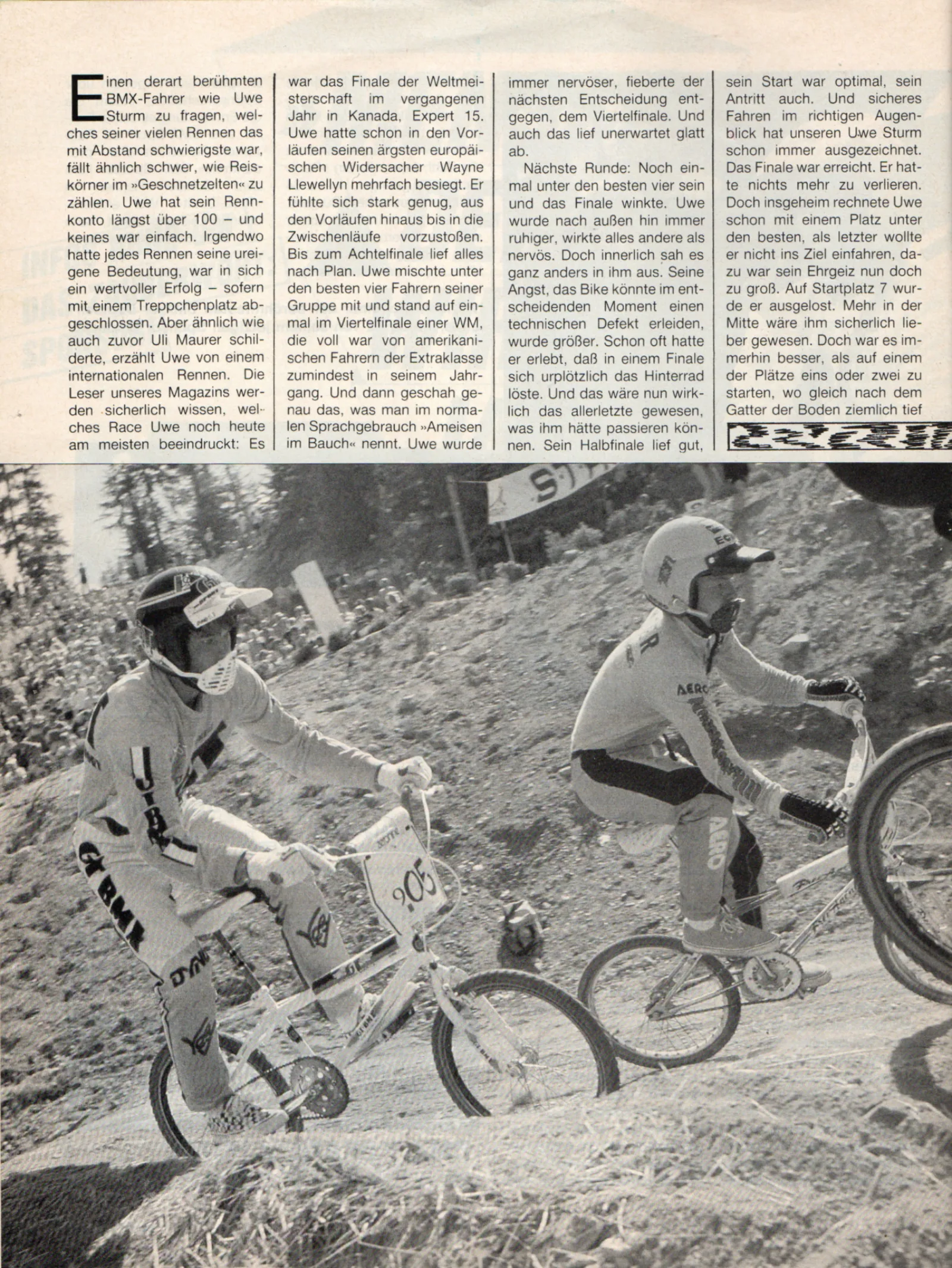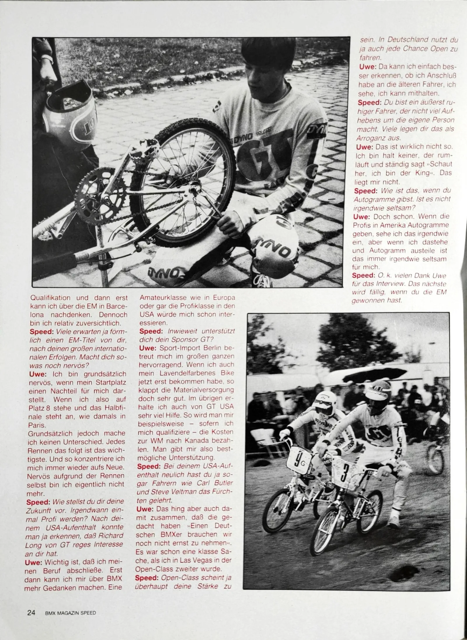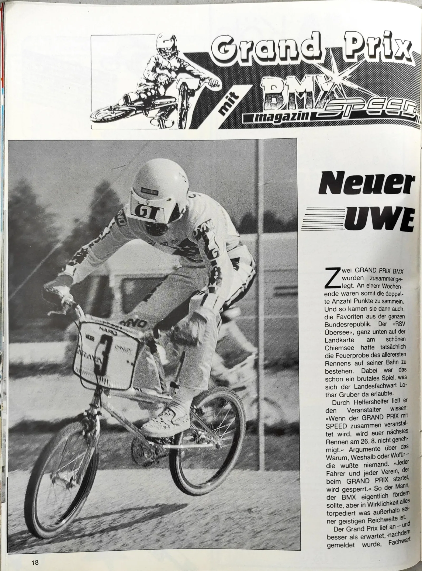 Uwe war einer der erfolgreichsten deutschen BMX-Fahrer der 80er und 90er Jahre, der neben mehreren deutschen Meistertiteln auch viele gute Platzierungen bei internationalen Wettkämpfen erreichte. Er war Vorbild für eine ganze Generation und dominierte seine Konkurrenz fast ein Jahrzehnt lang. In der Regel gewann er nicht nur die Finalläufe, sondern fast jeden einzelnen Lauf vom Vorlauf über die Zwischenläufe bis zum Finale. Uwe war nur sehr schwer zu schlagen, zumal er durch seine sehr guten Starts meist Start-Ziel-Siege einfuhr.