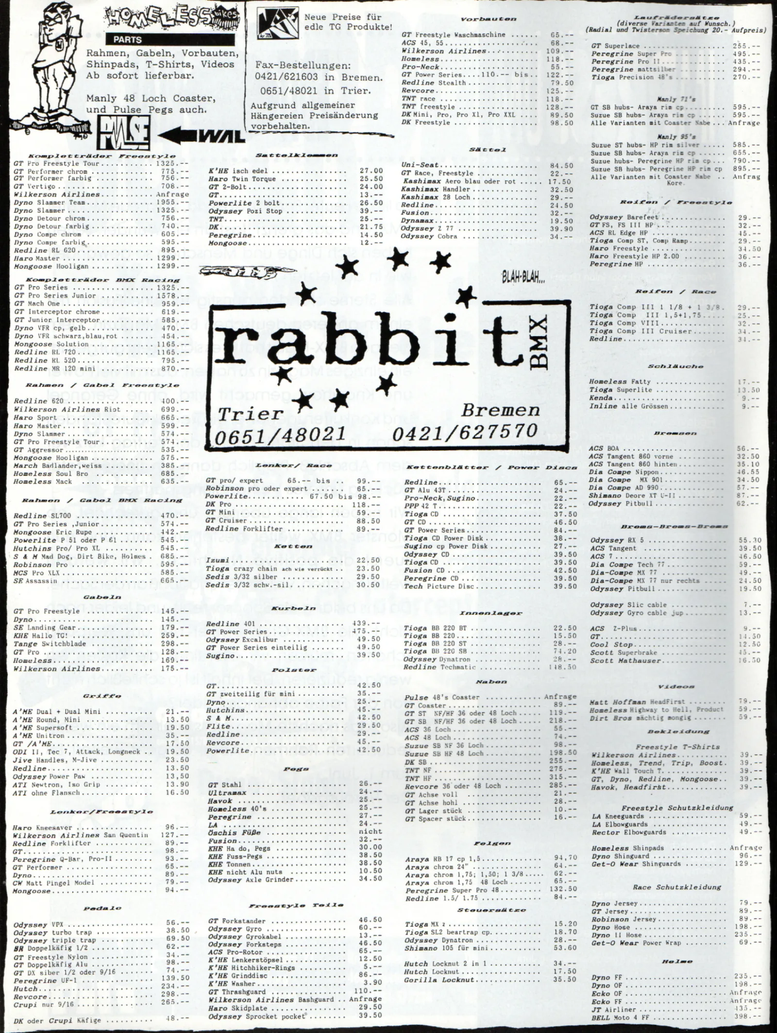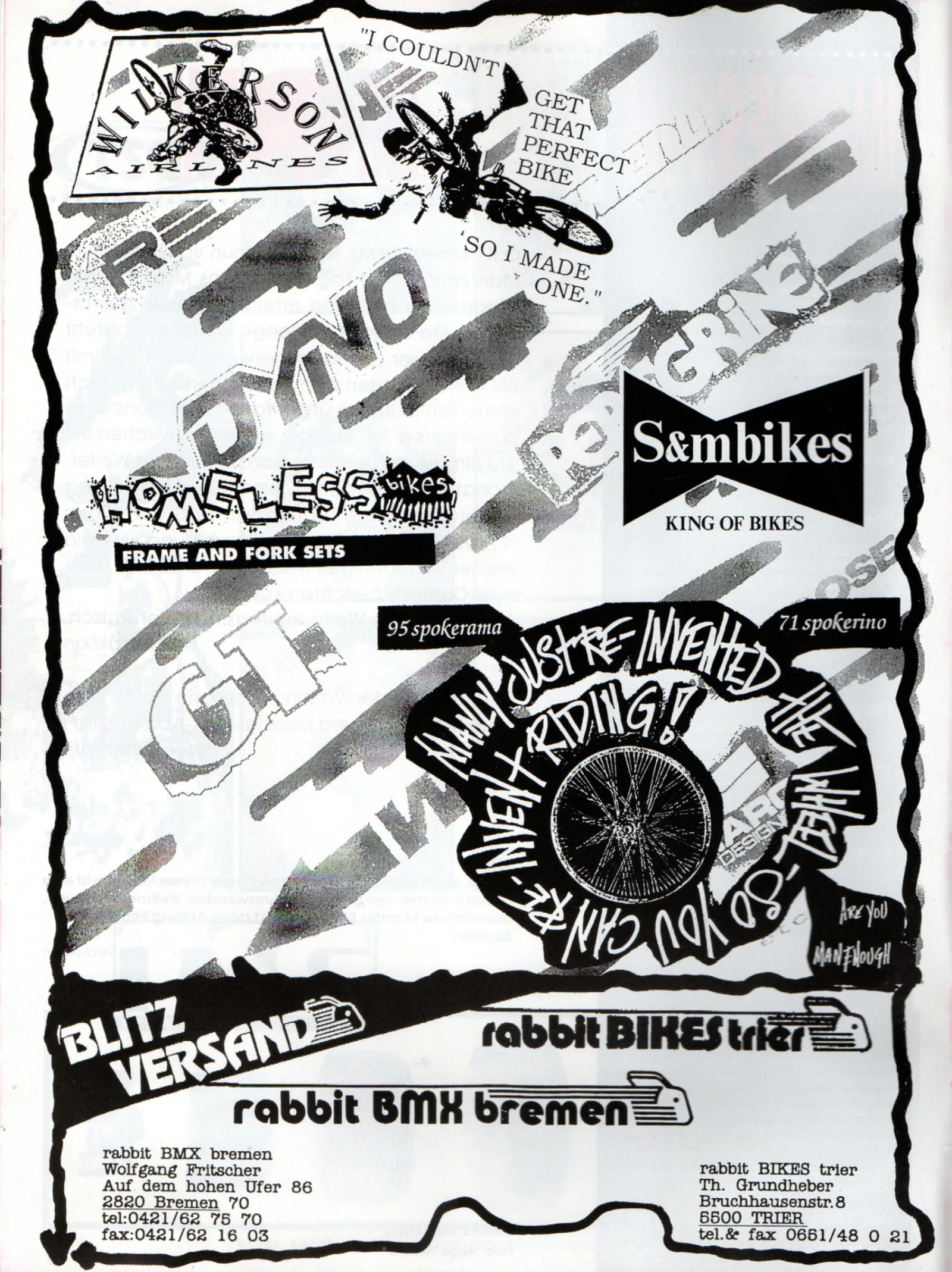 Als einer der ersten BMX-Händler Deutschlands hat Wolfgang Fritscher den Weg für die Händler-/Großhändlerlandschaft hierzulande geebnet. Jahrzehntelang importierte er die Produkte der großen und angesagten, aber auch der seltenen und Nischen-BMX-Firmen nach Deutschland und verkaufte sie größtenteils über seinen Versandhandel aus einer unscheinbaren Holzhütte im Bremer Norden. Mit seinem zum mobilen BMX-Shop umgebauten Anhänger reiste er zu Rennen und Freestyle-Contests in ganz Europa und war sich nie zu schade, einem Fahrer vor dem Start noch schnell das Laufrad zu zentrieren oder die Übersetzung zu ändern.